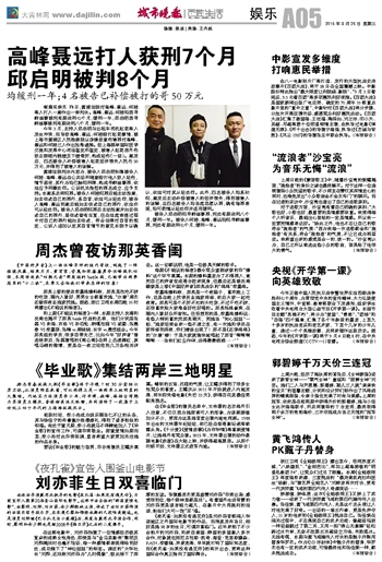 高峰聂远打人获刑7个月 邱启明被判8个月