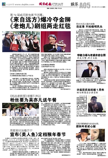 《来自远方》爆冷夺金狮《老炮儿》剧组两走红毯