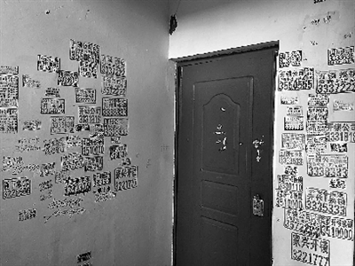 根据李小姐反映的情况,记者做了一番调查。9月19日下午,记者来到司法小区,走进10号楼3单元,记者看到楼道的墙壁上贴着各种小广告,连居民们的电表箱也“难逃此劫”,还有的商家直接用黑色的笔在墙上写下广告信息。记者粗略算了一下,6层高的居民楼竟张贴了近300个小广告。