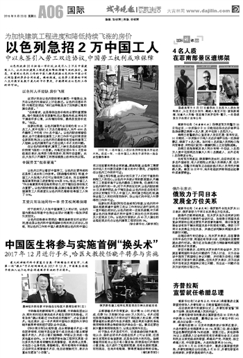 以色列急招2万中国工人中以未签引入劳工双边协议,中国劳工权利或难保障