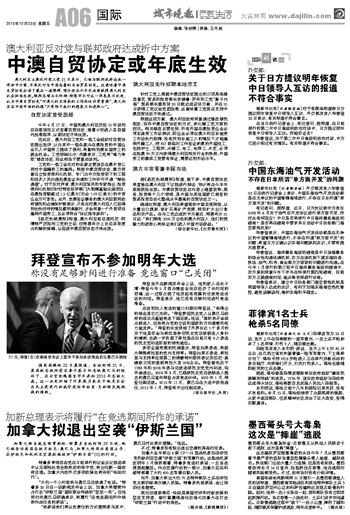 中澳自贸协定或年底生效