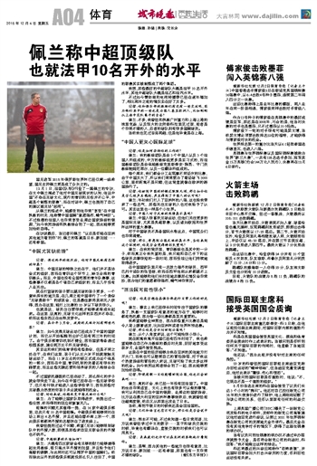 佩兰称中超顶级队也就法甲10名开外的水平