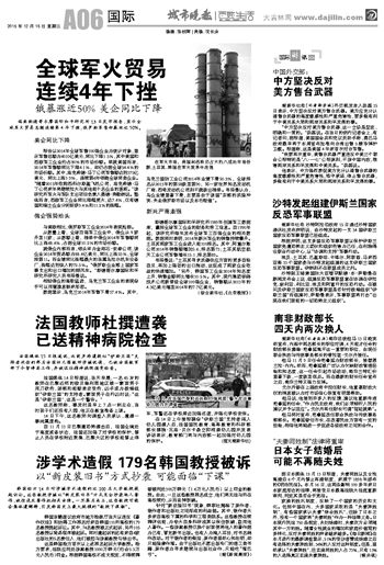 全球军火贸易连续4年下挫