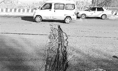 1月13日,记者来到辽北路立交桥了解情况。在桥中段的路面上,可以看到很多坑洼,这些坑洼大小、深浅不一,大的长达六七米,几乎横贯桥面,宽度近一米,小的也有两三米长、半米多宽,深度则是十几厘米到二三十厘米不等,其中严重的已经露出了钢筋骨架,几乎任何车辆都难以逾越。这些坑洼遍布于桥面上,在短短七八十米长的桥面上就有10来处。