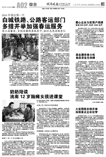 奶奶陪读洮南12岁脑瘫女孩进课堂
