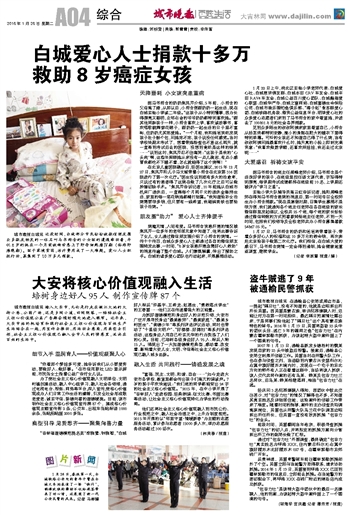 白城爱心人士捐款十多万救助8岁癌症女孩