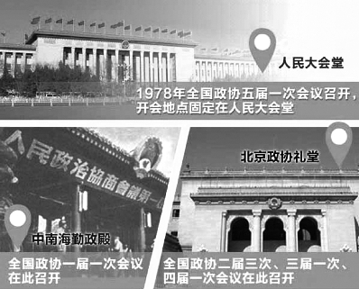 其实,直到1978年全国政协五届一次会议召开,开会地点才固定在人民大会堂。在此之前,会议地点并不固定,如全国政协一届一次会议是在中南海勤政殿召开,二届三次会议、三届一次会议、四届一次会议都是在北京政协礼堂召开。