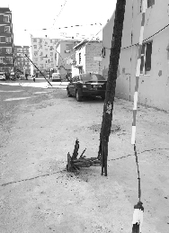 本报自3月18日刊发了关于白城市长庆新区长庆南街98号楼西侧有两个木质线杆折断,存在很大安全隐患的报道后,立即得到相关单位的重视,现危险的线杆已经被移除。 (记者 马彬/摄)