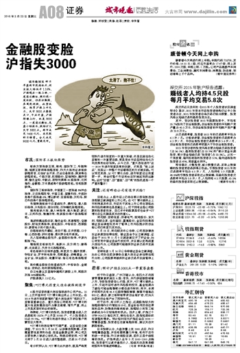 金融股变脸 沪指失3000