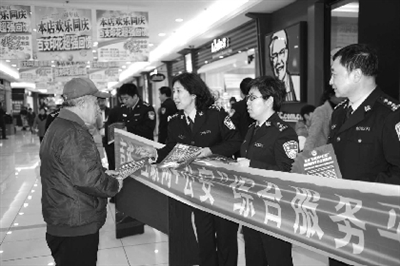 城市晚报白城讯 4月18日上午,白城市公安局组织市、县(区)两级公安机关集中开展了“互联网+公安”综合服务平台宣传日活动,在市区内大型商场、火车站、客运站、广场等人员密集场所设立宣传点26个,400余名派出所民警深入辖区企事业单位、社区开展了此次活动。
