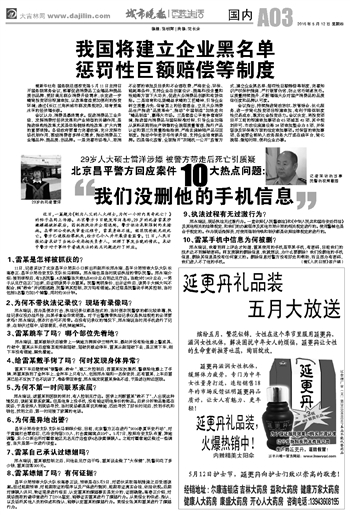 我国将建立企业黑名单惩罚性巨额赔偿等制度