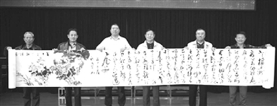 原市级领导初源富、王文齐、高平,著名书画家高洪贤、孙佳学、段序学、孙育才、李肇宏、杜尚臣等参与了长卷创作。(记者 李晓明 报道/摄)