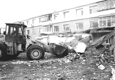 这处建于1974年近200平方米的临建锅炉房坐落于电业大院小区内,使用权属于小区业主委员会,现被改造成平房出租给省内一家通讯公司。该违章建筑距离电业大院小区2号居民楼不足3米,影响1楼住户的采光、出行安全、正常休息和小区的整体规划,更影响小区居民主动拆违的积极性和该小区老城改造工程进度。为此,幸福办事处、光明社区联合包保单位经开区社会事业发展局反复向业主委员会、承租方宣讲城改政策,以及老城改造给百姓带来的实实在在好处,经过近一周时间的沟通协商,最终达成共识进行拆除。从5月10日开始,办事处、社区、包保部门共10余人,出动2台翻斗车、1辆铲车连续3天冒雨代拆,结束了该临建房42年的违建历史,起到了良好的示范带头作用。目前,电业大院小区已经有近30户居民主动拆除违建,使该小区的拆违工作取得突破性进展。
