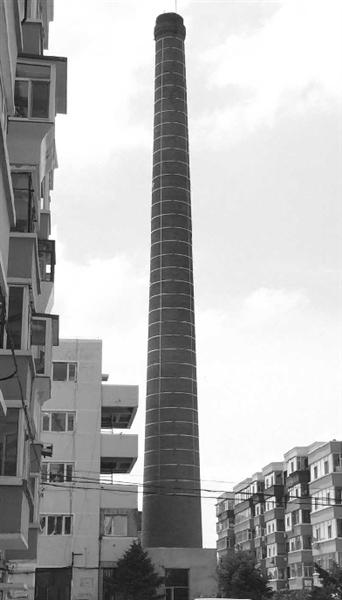白城市金辉小区内德盛热力公司的供热烟囱出现裂纹,该公司为解决这一情况消除了安全隐患,近日为这根烟囱安装防护钢网紧紧将其箍住。