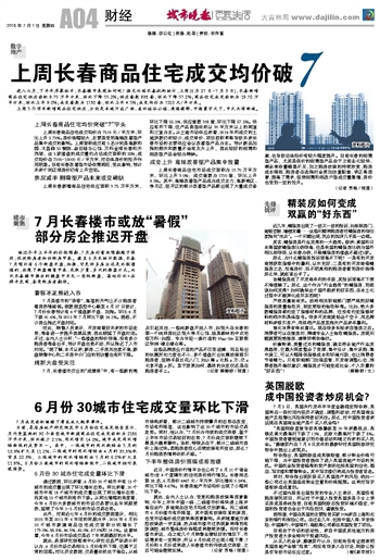 7月长春楼市或放“暑假”部分房企推迟开盘