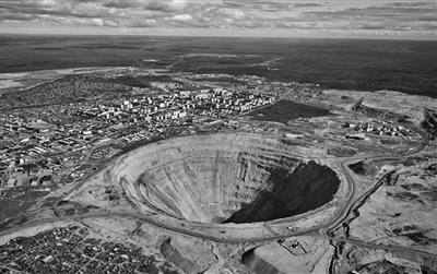 西伯利亚东部发现一处全球最大钻石矿:“钻石之城”米尔矿,这处矿藏估值约1111亿人民币,是目前最昂贵的钻石矿。当地管理部门要求直升机不得近距离飞过矿坑上空,以免被吸进矿洞内。/央视