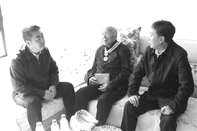 今年10月,正值中国工农红军长征胜利80周年之际,于宪利老人作为吉林省仅有的4位、白城市仅有的一位健在的老红军,接到了由中央颁发的“中国工农红军长征胜利80周年纪念章”。因为无法交流,于宪利老人在接到纪念章时的所思所想,人们已经无从得知,但记者却从老人眼神中偶然闪过的一丝光芒,体会到了他的心情。此刻,记者眼中这位老者,俨然又变成了那个白马双枪、驰骋沙场的年轻汉子。