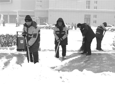 近日,连续的降雪把白城市变成了银装素裹的世界,降雪就是命令就是信号,环卫工作者第一时间走上街头清理积雪,确保道路通畅和交通安全。(记者 马彬/摄)