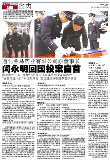 闫永明回国投案自首