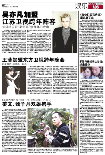 吴亦凡加盟江苏卫视跨年阵容