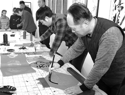 城市晚报白城讯 1月10日,白城市文联和白城市硬笔书法家协会组织10余名书法家到白城市长庆办事处白鹤社区,书写春联和福字,向基层群众送去了新春的祝福。