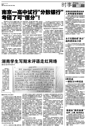 湖南学生写期末评语走红网络