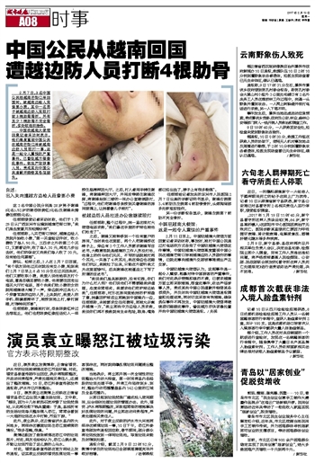 中国公民从越南回国遭越边防人员打断4根肋骨