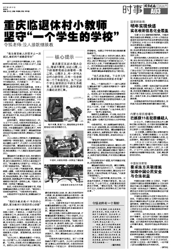 重庆临退休村小教师坚守“一个学生的学校”