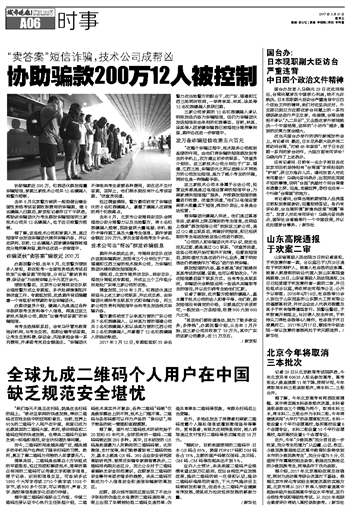 全球九成二维码个人用户在中国缺乏规范安全堪忧