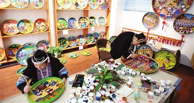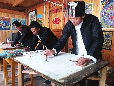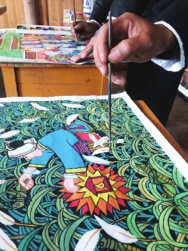 地处湘桂黔接合部的广西三江侗族自治县活跃着一批乡村农民画家,他们以农村民俗作为创作元素,进行农民画创作,并将作品销往广东广西和香港。据了解,三江侗族自治县的侗画作者目前有600多人,从2017年1月至今,侗画产业总收入达180多万元。/新华社