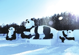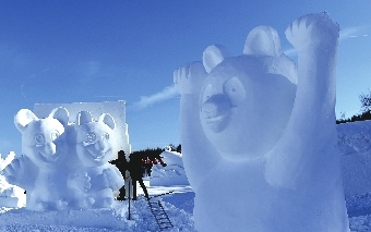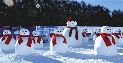 据长春净月潭旅游发展集团宣传策划部郗文宇介绍说,今年“净月雪世界”建设总占地面积60万平方米,造雪量15万立方米,以讲好中国故事,体现文化自信为主要创作方向,产品主题为“欢歌新时代,纯美净月潭”,设计共分四部分。第一部分为文化总动员,一群系着红围脖的雪人和活泼生动的企鹅,格外惹人喜爱。雕塑《我们在长春相遇》,将长春市的地标进行融合展示,体现了长春这座城市的文化魅力。