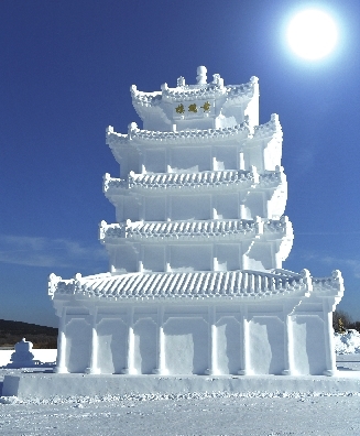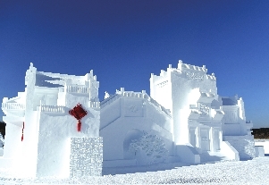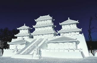 走进净月雪世界,迎面而来的东方圣殿唐代大明宫,是中国古代宫殿建筑的巅峰之作,也是东方文明发展中的典型代表,对丝绸之路的发展有着极为重大的影响。此外,古圣人、王昭君等小型雪雕点缀其中,是弘扬中国传统文化的点睛之笔。