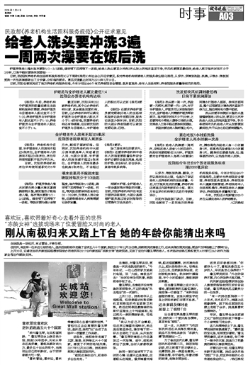 给老人洗头要冲洗3遍一周两次澡要在饭后洗