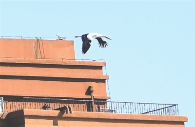 近日长春伊通河飞来一只国家一级保护鸟类东方白鹳