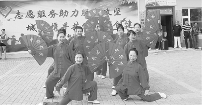 社区工作人员、醉美夕阳舞蹈队、在职党员等50余位爱心志愿者为三合乡凤城村的村民送去了一场文化大餐。演出在舞蹈《欢聚一堂》中拉开帷幕。二人转《猪八戒拱地》、花样舞蹈《太极功夫扇》、男生表演唱《光腚娃娃老兄弟》、女声独唱《我爱你,中国》、扇子舞《红梅赞》等13个节目,演员们精彩的表演赢得村民的阵阵掌声。舞蹈《好运来》将演出推向了高潮。