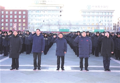 市领导与我市近万名公职人员一起面向国旗庄严宣誓