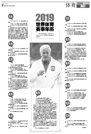 2019世界体育赛事年历