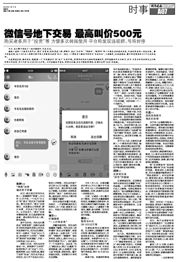 微信号地下交易 最高叫价500元