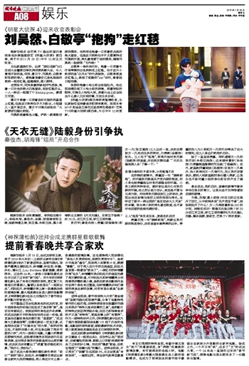据新华娱乐 由张勇编剧,李玥担任制片人,李路执导,秦俊杰、徐璐、胡海锋领衔主演,陆毅特邀主演,张芷溪、朱刚日尧、莫小奇等联合主演的《天衣无缝》,目前正于每晚7时30分,在江苏卫视、浙江卫视热播。