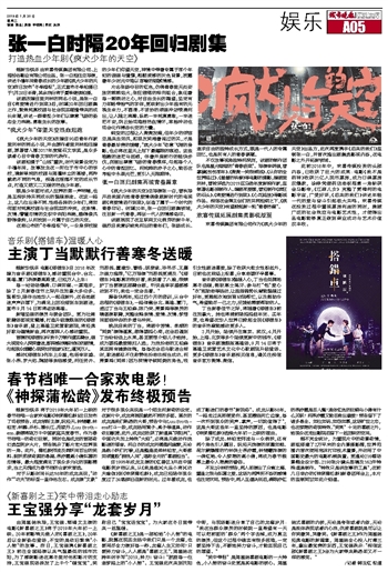 据新华娱乐 由欢喜传媒集团有限公司、上海拾谷影业有限公司出品,张一白担任总导演,讲述千禧年间青春成长的少年剧《疯犬少年的天空》昨日发布“冬季海报”,正式宣布冬季拍摄已于1月28日杀青,其余戏份将于夏季继续拍摄。
