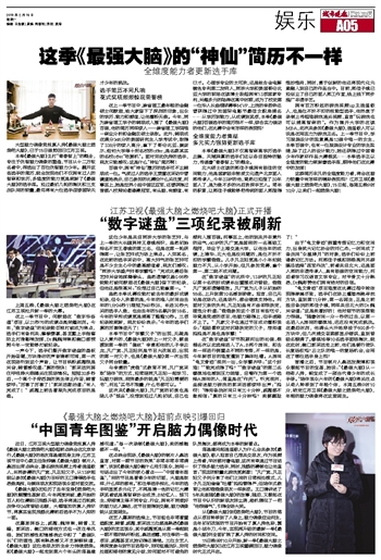 15日晚9时10分开始,新一季《最强大脑之燃烧吧大脑》已在江苏卫视重磅回归,脑力偶像时代正式开启。
