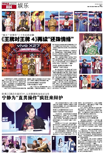 众多影视作品中,古装剧一直备受观众的喜爱。在22日晚9时10分播出的浙江卫视《王牌对王牌4》第八期节目中,“皇阿玛”张铁林、“晴儿”王艳将携手人气古装剧演吴谨言、张嘉倪、苏青组团踢馆,与“王牌家族队”抽丝剥茧寻找盗宝真凶“我来也”。