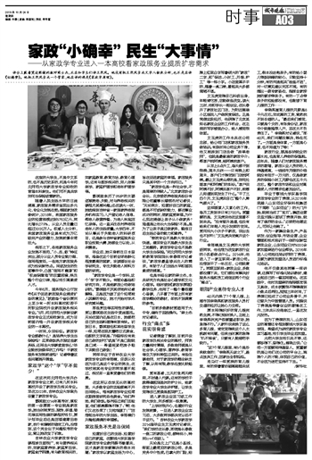 一时间,众说纷纭。家政学专业都教什么?是培养大学生当保姆吗?买菜做饭洗衣服这些家务活,还用去大学课堂里学么?毕业能找到像样的工作吗?干家政服务有发展前途吗?记者带着这些问题展开调查。