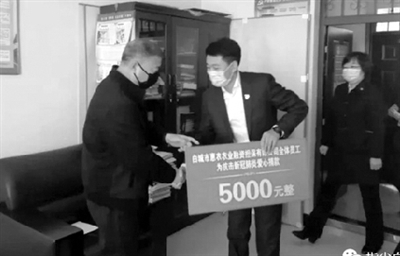 “疫情当前,共同抗疫是我们每个人的责任。身为国有政府性融资担保公司,更要在此时彰显我们的担当。请收下,这是我们员工的一份心意。”2月26日,白城市惠农农业融资担保公司总经理汪洪成将5000元防疫爱心善款送到白城市红十字会。