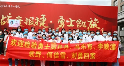 “欢迎大家回到长春,回到家乡!”“欢迎妈妈回家!”“作为医务人员第一时间去满洲里支援,我作为家属非常荣幸!”……6月4日,吉林大学第一医院支援满洲里医疗队11名白衣战士结束在长白山的休整,胜利归来。吉大一院为这支“圆满号”举行了简短而庄重的欢迎仪式,队长鲍万国代表支援满洲里医疗队交还党旗、队旗,王奭骥交还院旗。