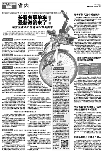长春共享单车 最新政策来了