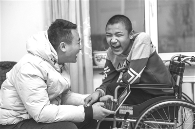 上下楼梯、食堂打饭、往返厕所,孙偲藐都为王敖然提供帮助,两人也成了形影不离的好朋友。小学毕业后,孙偲藐和王敖然一起在敖汉旗贝子府镇中学上学,他们不仅在同一个班,还成了同桌。此时的王敖然已经不似小学时瘦弱,病情也有所加重。孙偲藐背着王敖然明显吃力,但他依旧坚持。班上的同学以及老师也一起帮助王敖然。