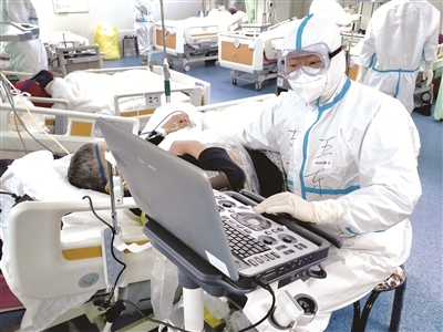 护航,为每一位患者 吉大一院超声科王东轩副主任为患者做辅助超声检验,他将驰援武汉积累的丰富经验用于重症患者救治中。 |
