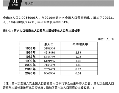 户别人口——全市共有家庭户3330525户,集体户276608户,家庭户人口为8018524人,集体户人口为1048382人。平均每个家庭户的人口为2.41人,比2010年第六次全国人口普查3.12人减少了0.71人。