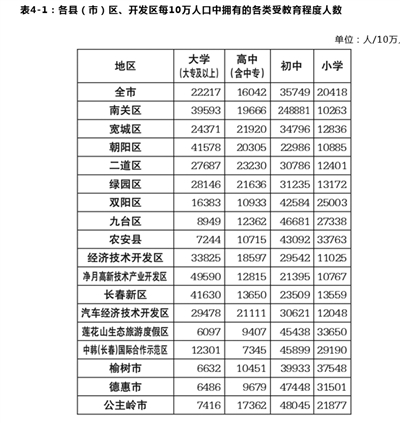 人口受教育情况——根据第七次全国人口普查结果,2020年11月1日零时长春市常住人口受教育基本情况为:
